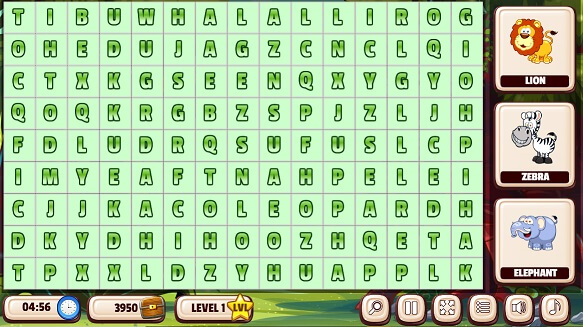 The essence of the game is that on the left you will have a field with words, and on the right – the words you need to find. In this game are the names of animals.